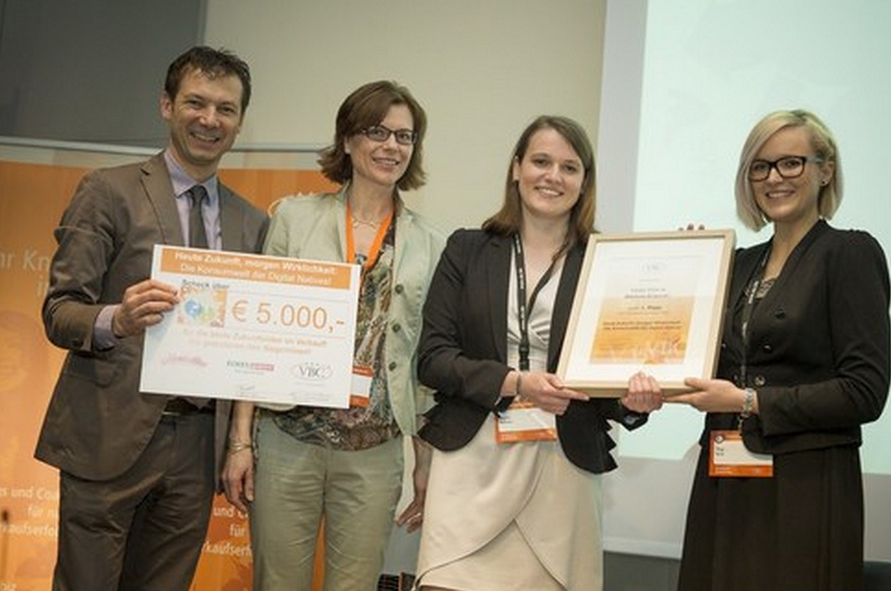 Wie wollen Digital Natives in Zukunft einkaufen? Im Rahmen eines spannenden Wettbewerbs reichten junge Menschen ihre Ideen ein - das Siegerprojekt wurde auf dem Verkaufskongress präsentiert. Tanja Pöltl und Martina Bräuner (FH St. Pölten) begeisterten die Teilnehmer und freuten sich über einen Preis in der Höhe von € 5.000,- für die besten Zukunftsideen im Handel (Projekt-Sponsoren: VBC, Almdudler und Eckes-Granini).